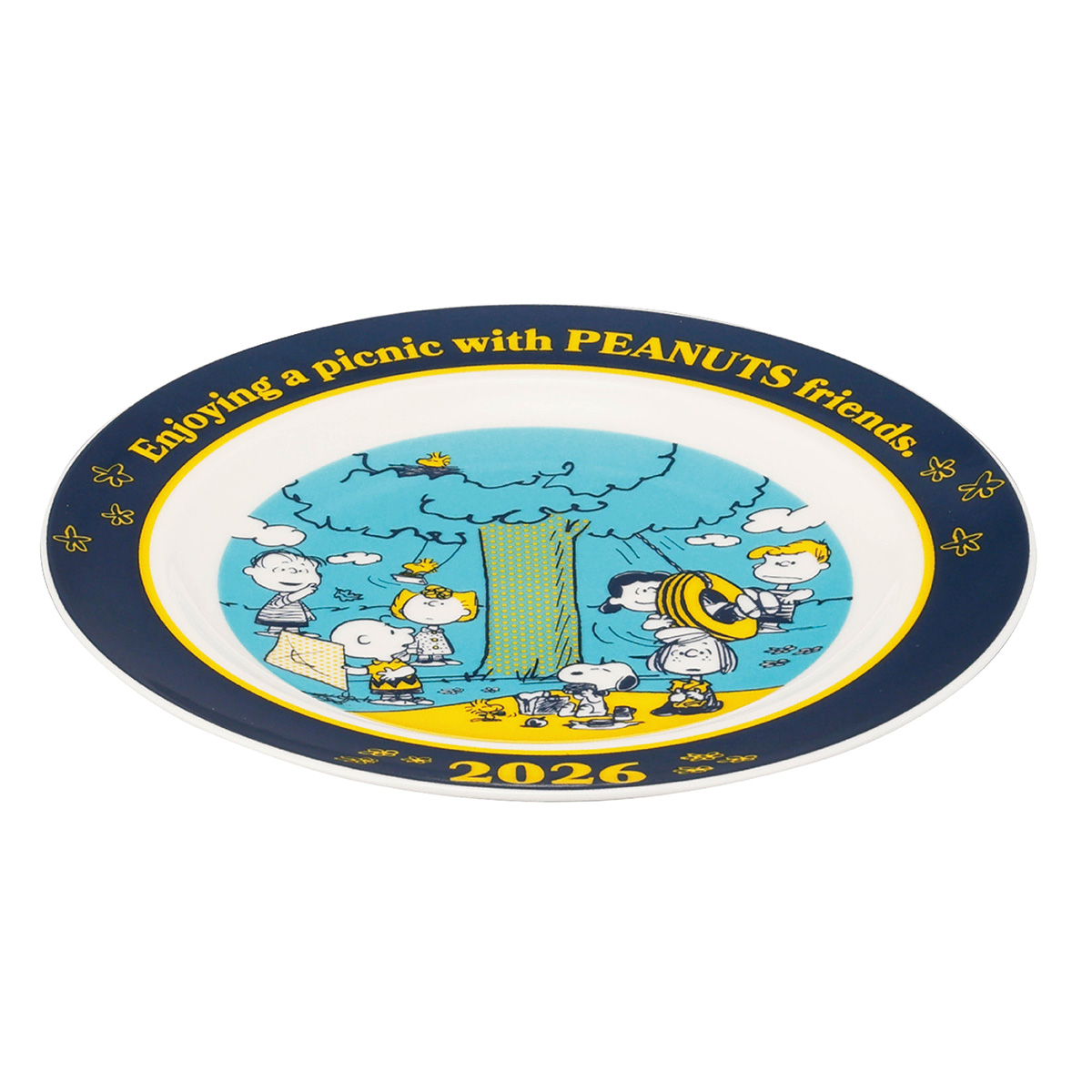 "2026年を記念したイヤーズアイテムのテーマは【Enjoyable Picnic】大きな木の下でスヌーピーと仲間たちが心ゆくまでピクニックを楽しむ、楽しいデザインプレートです。2026年の記念に、また思い出のコレクションの一つとしていかがでじょうか。
